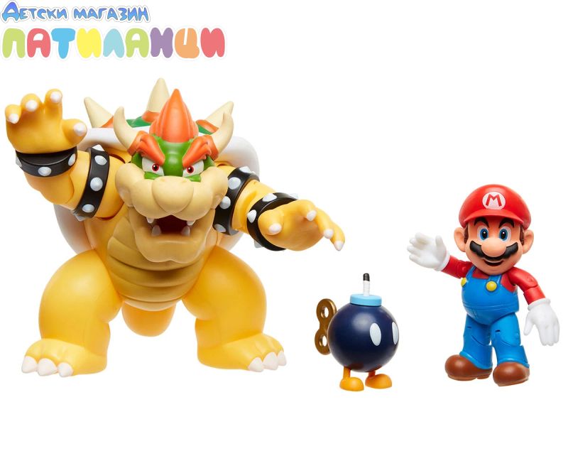 Супер Марио срещу Диорама Jakks Pacific 64512-4L Nintendo Mario срещу Bowser