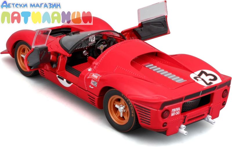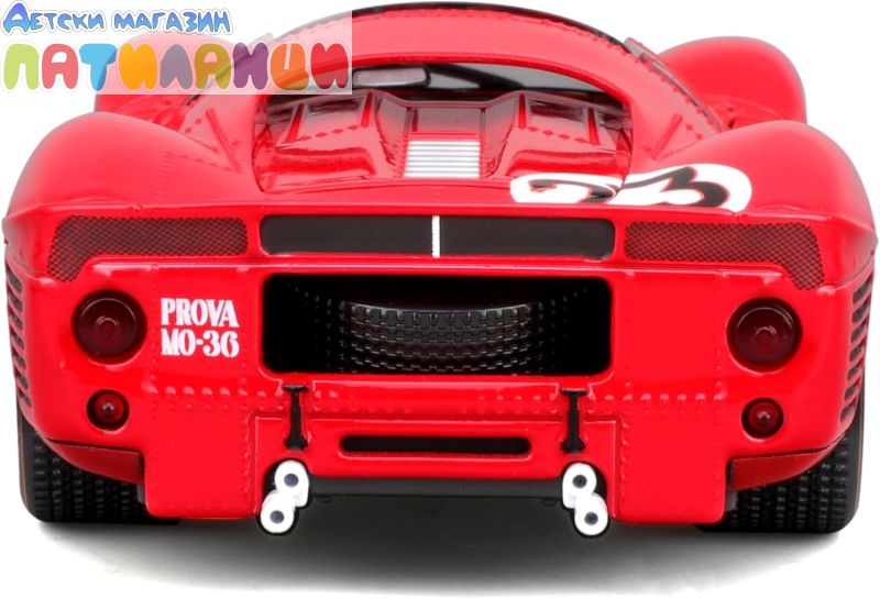 Еха! Обърнете внимание на детайлите на модела Ferrari 330 P4 Daytona от Bburago. Тази великолепна реплика на автомобила с размери 1:24 е с невероятно високо ниво на детайлност на екстериора, което го прави почти идентично с оригиналното превозно средство. Този модел е абсолютно перфектен за колекционери от всички възрасти. Добавете нотка елегантност и мощ към вашата колекция от модели с това Ferrari 330 P4 Daytona в мащаб 1:24 от Bburago. Този модел предлага невероятна прецизност към детайла и дизайн, който улавя чистата същност на този емблематичен автомобил. От предницата до колелата, всеки детайл е прецизно възпроизведен. Идеален подарък за любители и колекционери на автомобили.