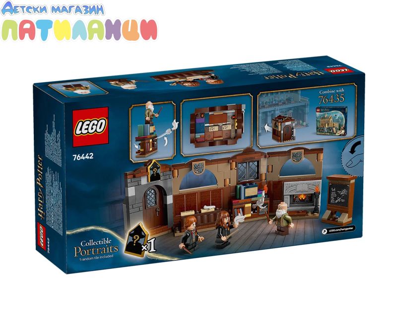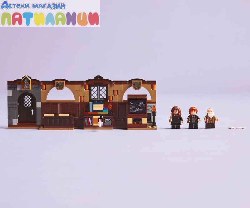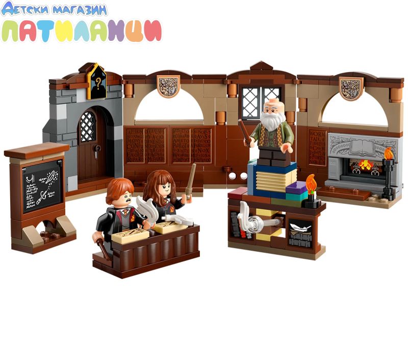 Разиграйте омагьосващата сцена от Хари Потър и философския камък в часа по вълшебствата в замъка Hoguorts с този комплект с магьосническа играчка за деца (76442). Забавна идея за подарък LEGO® Harry Potter™ за деца над 8 години, този малък комплект много начини за игра е страхотна изненадващо по всеки повод, с който да запознаете момчето, момичето и всички любители на фантазията с магьосническия свят от тухлички. Класната стая в Hoguorts за построяване се разгъва за лесна игра и включва функция за левитиране на перото под ефекта на Uingardium leviosa, подвижни бюра за учениците, подвижна дъска с инструкции за заклинания и други. Тази вълшебна играчка включва и герои LEGO Harry Potter – Рон Уизли, Хърмаяни Грейнджър и професор Флитуик – за разиграване на неограничени въображаеми ролеви истории. Този комплект за игра с класна стая е част от колекция модулни строителни комплекти LEGO Harry Potter (продава се отделно), които се свързват, за да създадат най-детайлната сцена на замъка Hoguorts от тухлически LEGO.
