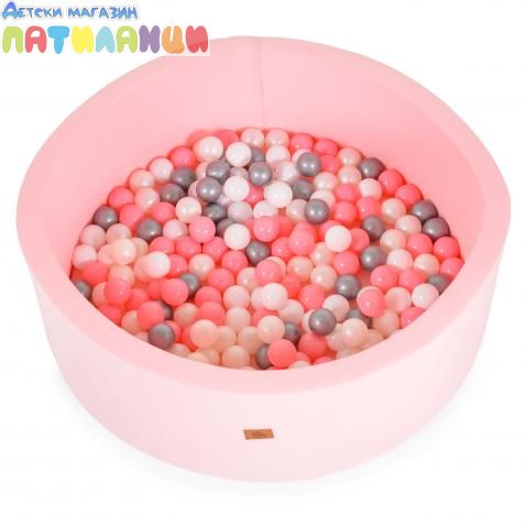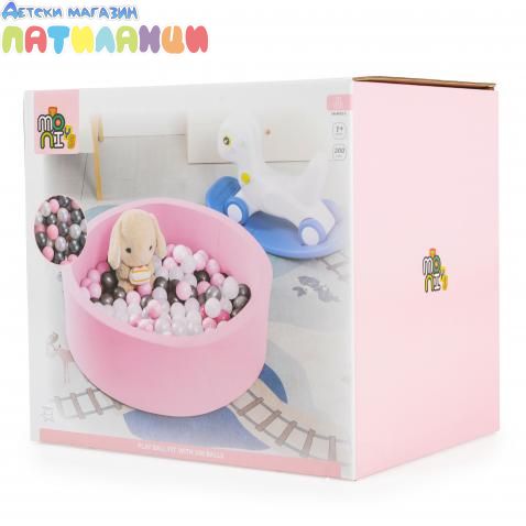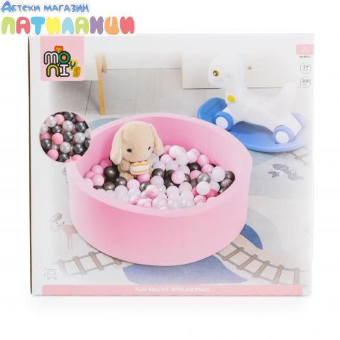 С вътрешен диаметър 80 см и включени 200 топки в 4 различни цвята (размер 5.5 см), той е идеален за забавна игра, която стимулира двигателните умения, координацията, както и опознаването на цветове и форми.