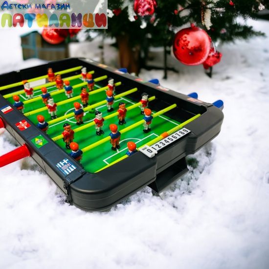 Тази издръжлива дървена маса е достатъчно малка, за да се побере на повечето маси и бюра, и е компактна за съхранение. Стилни  шарки украсяват рамката, а дръжките със сигурен захват държат играчите под контрол.