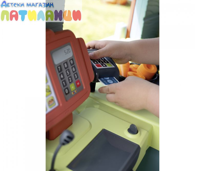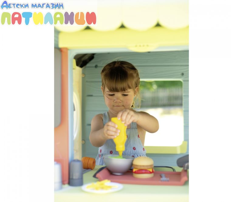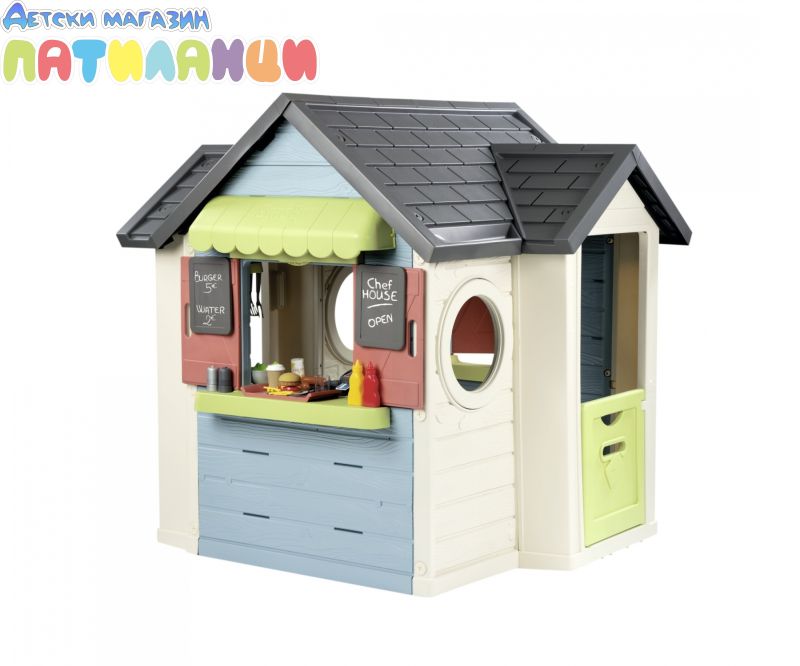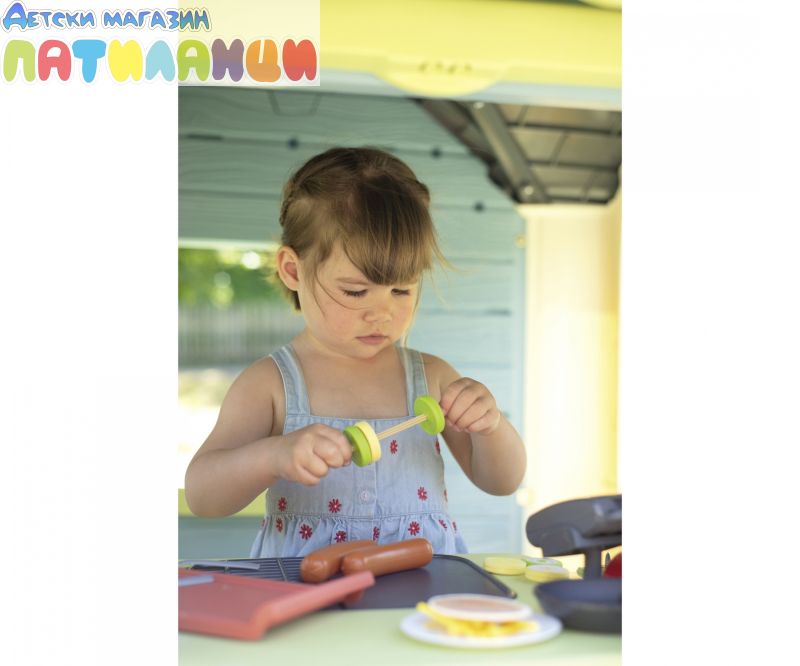 Тази къща, която съчетава кухня и функции за пазаруване, ще позволи на вашето дете и неговите приятели да подготвят поръчките на клиентите си, да ги обслужват и да събират пари точно като в истински ресторант на открито!