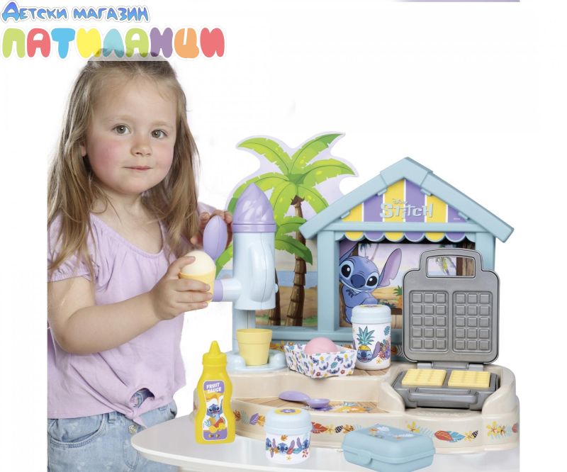 Smoby Stitch Beach Bar позволява на децата да се потопят в свят на игра и творчество! Този колоритен комплект за ролева игра е идеален за малки продавачи на сладолед и вафли на възраст над 3 години. С вълшебната функция за приготвяне на сладолед децата могат игриво да създават и сервират вкусни порции сладолед и да почерпят своите приятели или плюшени животни.