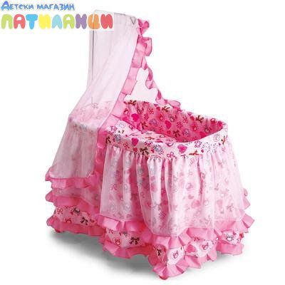 Леглото люлка Princess е в нежен розов десен с драперия и е подходящо за деца над 3 години.