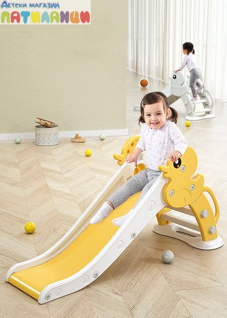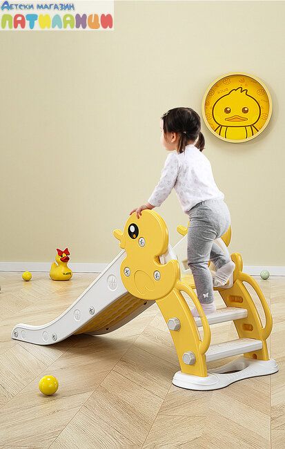 Изработена с внимание към детайла, тя впечатлява с весел патешки дизайн, който приканва децата към игра. Стабилната основа и допълнителната опора осигуряват сигурност при всяко пързаляне. Подходяща за деца с тегло до 25 кг.
