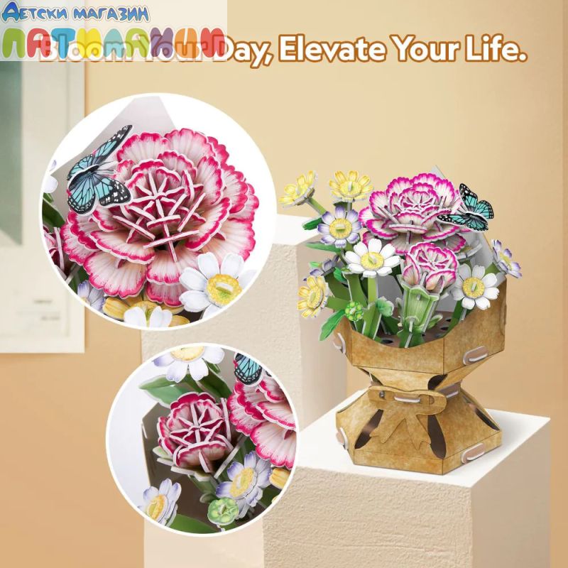 3D пъзелите Flower Bouquet ти дават възможност да създадеш красиви букети, които да добавят свежест и елегантност в твоя дом.