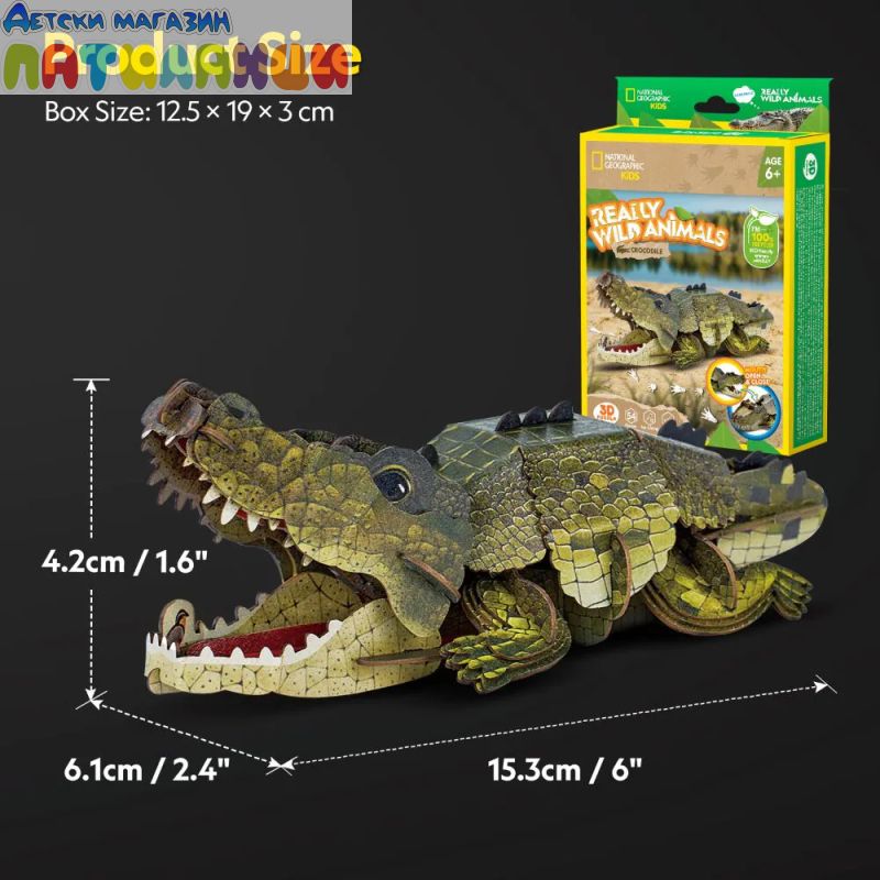 Крокодилът, символ на мощ и сила, оживява в 3D форма. След като бъде сглобен, пъзелът разполага с подвижни елементи – устата на крокодила се отваря и затваря, сякаш се готов да захапе, добавяйки динамика и реализъм към експозицията.