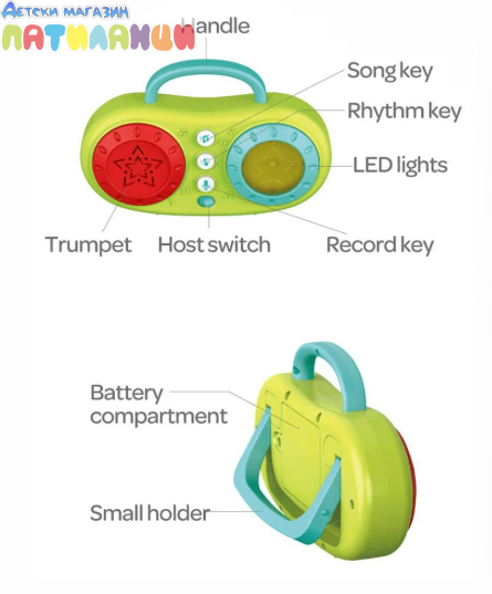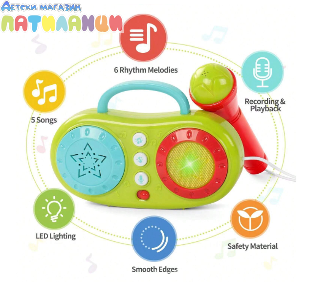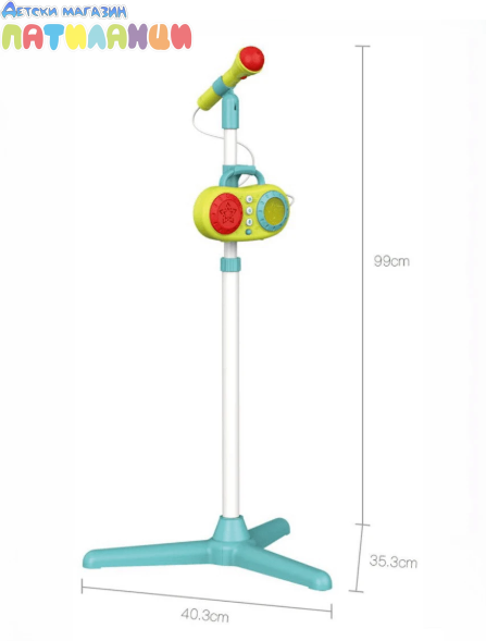 Подарете на детето си прекрасна изненада и му купете модерна стойка за микрофон. Играчката има мелодии, песнички, функция за запис и светлинни ефекти. Освен това, стойката има регулируема височина, така че расте с детето ви!