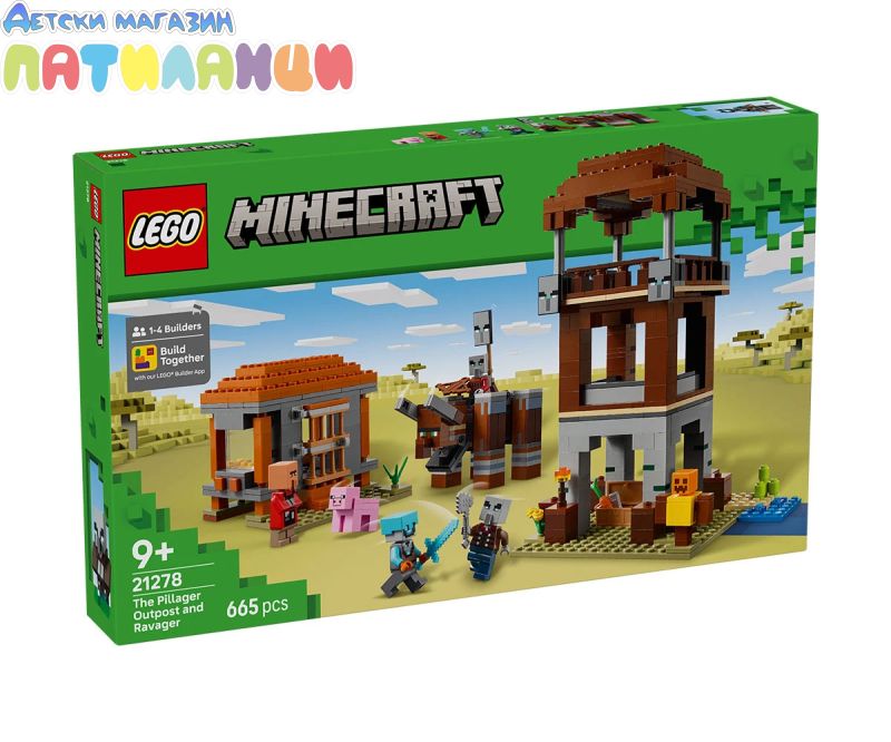 „Кулата на грабителите и Опустошителя“ (21278) е креативен подарък от видеоигра за деца, които обичат строителни играчки, приключения от LEGO® Minecraft или декорация за геймърска стая. Тази висококачествена играчка за деца на възраст над 9 години потапя играчите в забавление от Minecraft. Комплектът включва 4 минифигурки LEGO Minecraft: Космически страж, Капитан на нашествениците, селянин-зидар и отмъстител. Фигурата на опустошителя за конструиране има функция с лост, която позволява на децата да правят движение за щракане на челюстта и движение на главата. Наблюдателната кула включва стълби, които осигуряват достъп до трите етажа, банери с лица на грабители и сандък с грабител. Къщата на зидаря е с отваряща се врата и интериор с легло ирезачка за камъни. Има и фигура LEGO Minecraft на прасе и аксесоари, включително тренировъчен манекен, факла, морков, железен слитък, диамантен шлем, диамантен меч, арбалет и желязна брадва. Приложението LEGO Builder дава на десетте допълнителни възможности за използване на системата, за да обработвате и завъртате модели в 3D. Комплектът съдържа 665 части.