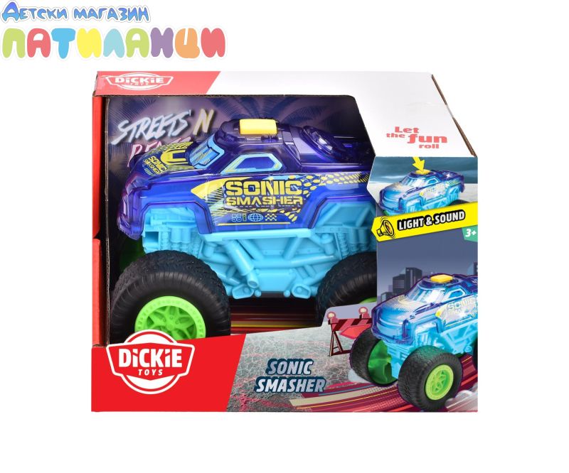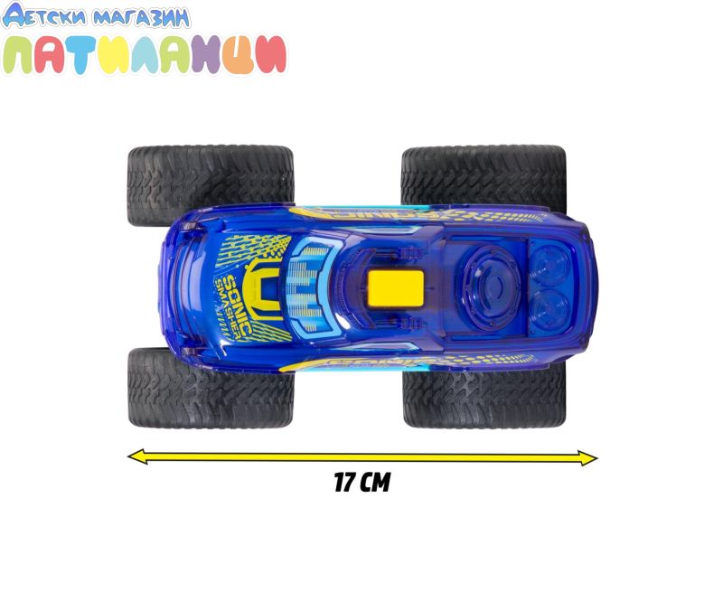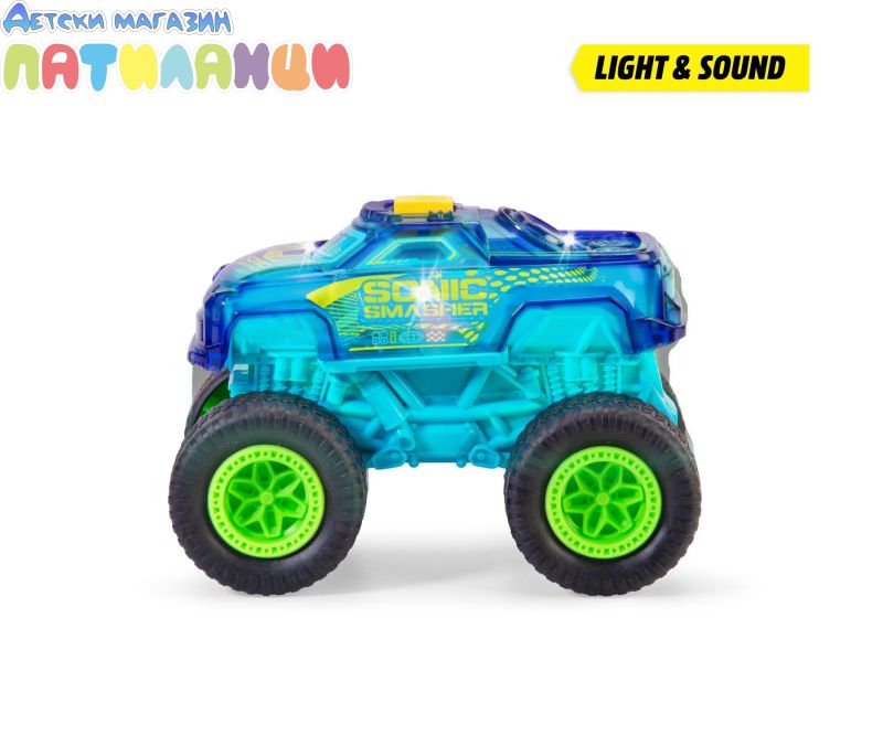 - Страхотно шоу с монстър камиони - С натискането на един бутон, 17-сантиметровата количка играчка "Sonic Smasher" се трансформира в подвижна сцена и изпълнява екшън спектакъл със светлинни и звукови ефекти.