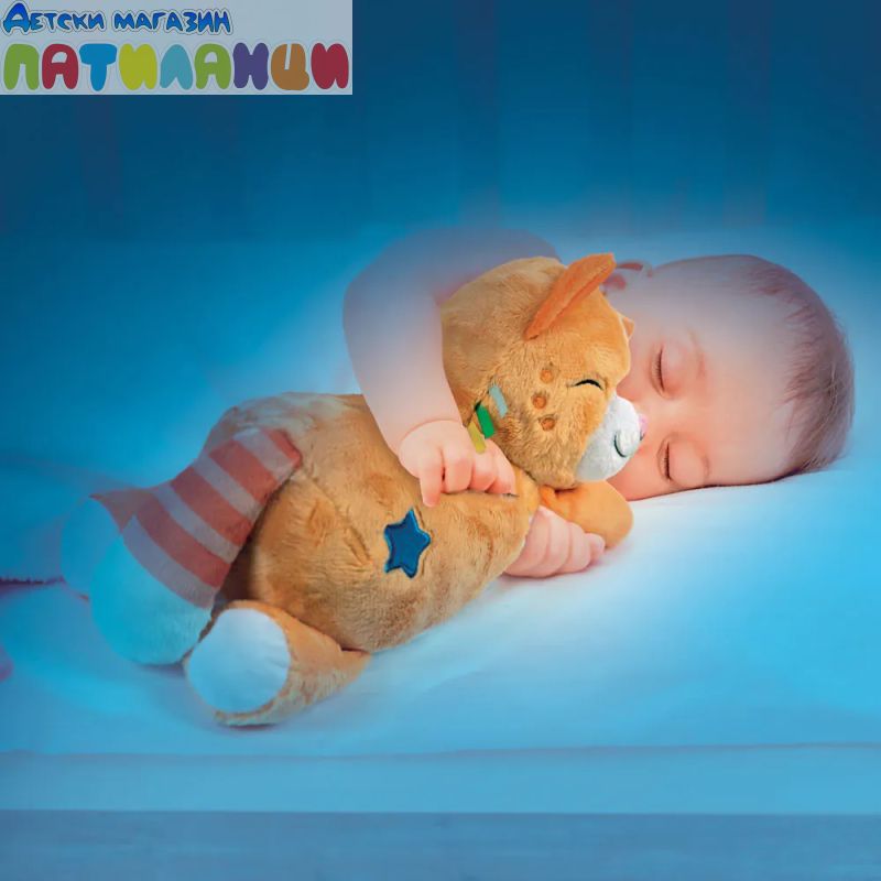 Нежен приятел, това меко малко коте се гушка и релаксира със сладки звуци и вибрации като истинска мъркаща котка. Неговият мек глас помага на децата да спят. Тази мултисензорна мека играчка има над 10 минути мелодии и мъркащи шумове, заедно с бутони за отделно регулиране на силата на звука и вибрацията.
