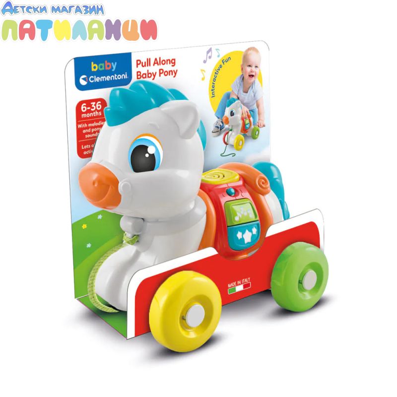 ? Clementoni Baby Музикално пони за дърпане 17812 е идеална играчка за първите стъпки на вашето дете.