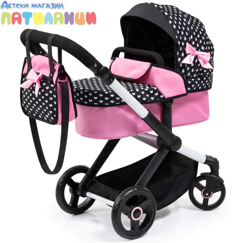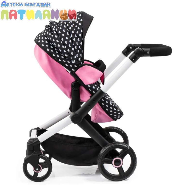 Комбинираната детска количка за кукли XEO има модерен дизайн и е подходяща за кукли до 52 см.