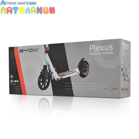 С максимално натоварване до 100 кг, тротинетката Plexus е подходяща както за деца и тийнейджъри, така и за възрастни, които търсят забавление навън.Този продукт е произведен в съответствие с европейски стандарт ЕN 14619:2019.