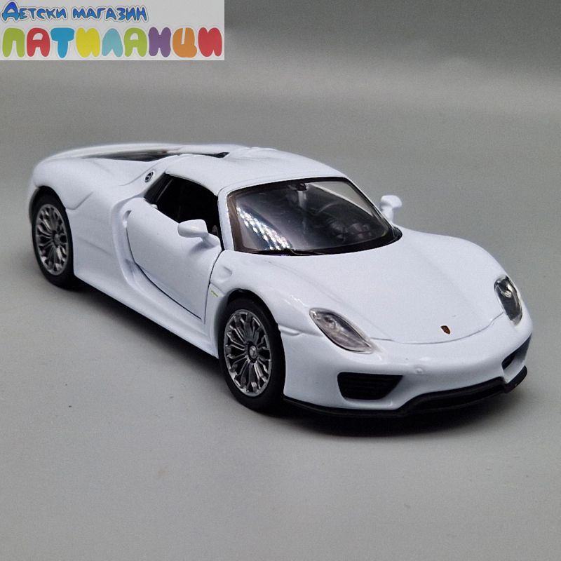 Метална кола Porsche 918 Spyder 1:34 Welly бял
