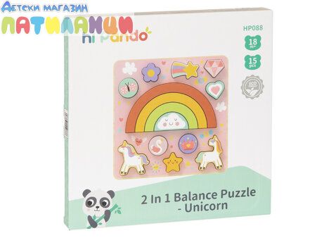 Дървен пъзел и игра за баланс 2в1 Unicorn Hi Pando HP088