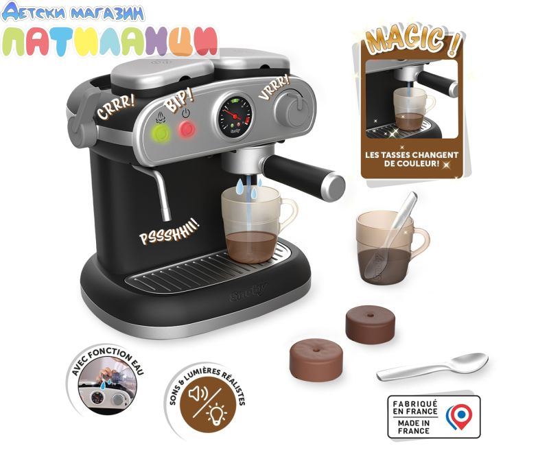 Тази кафемашина предлага ролева игра, която помага на децата да развият своята креативност и да пресъздадат ежедневните действия на възрастните.