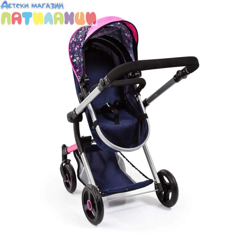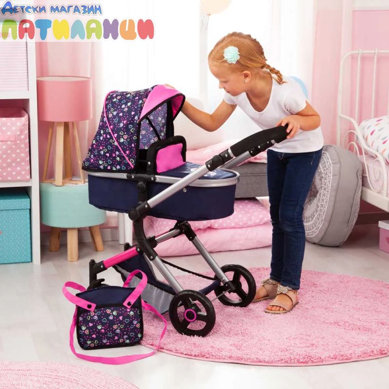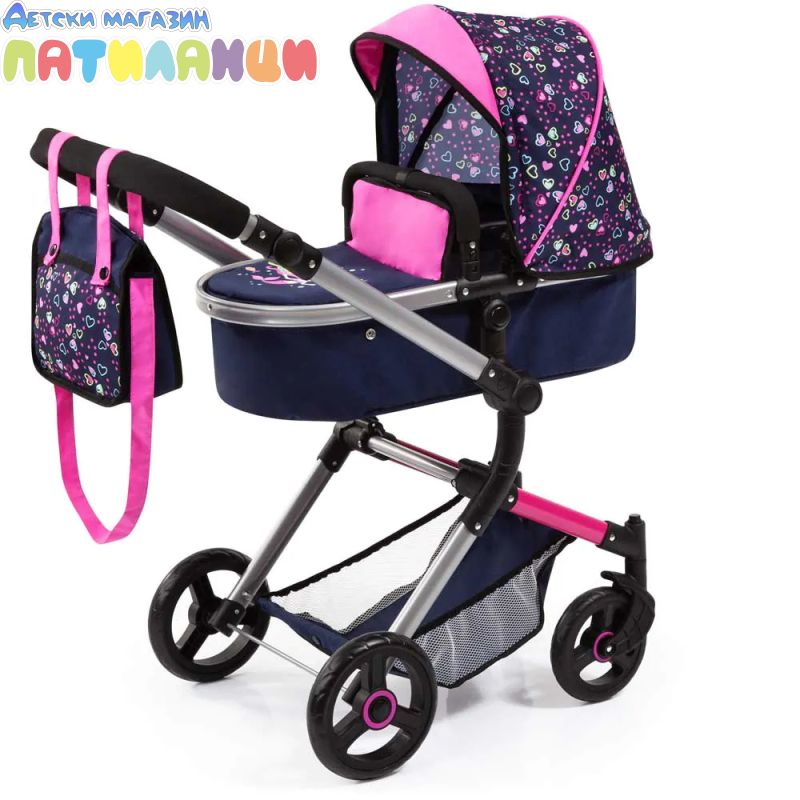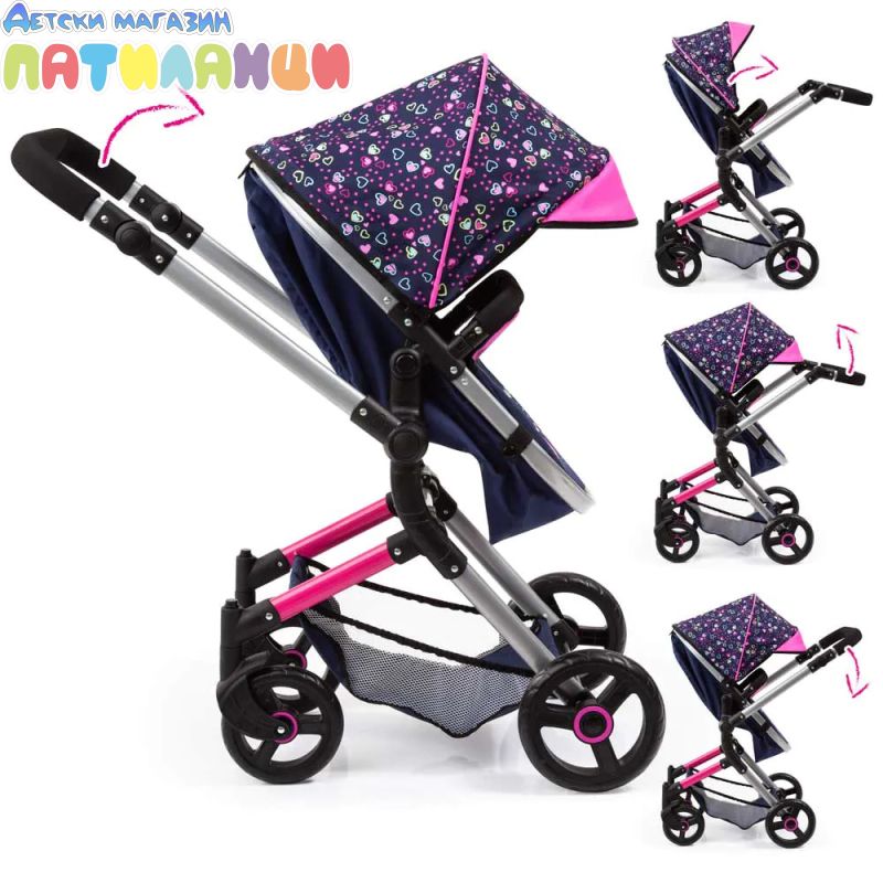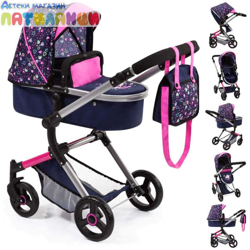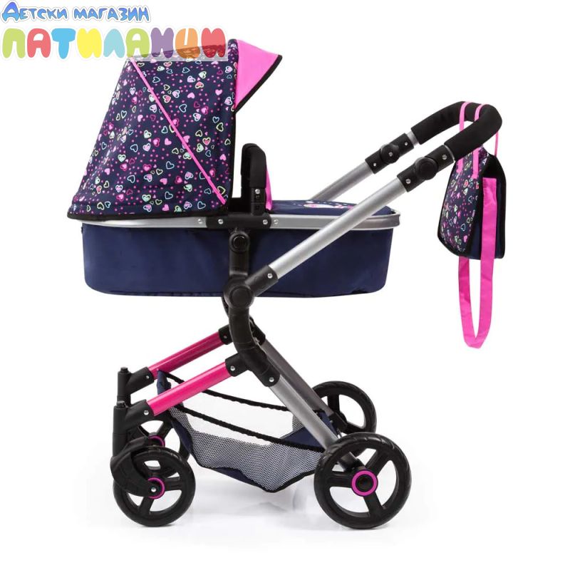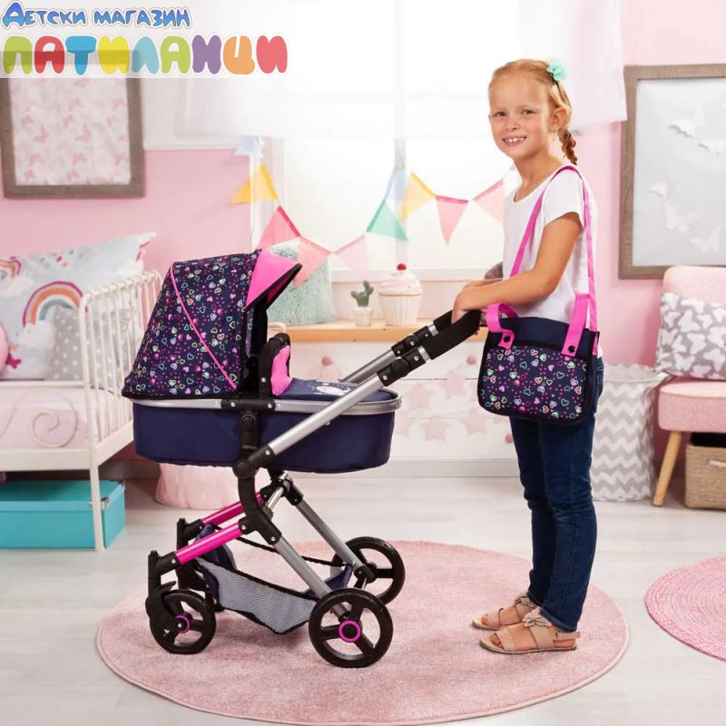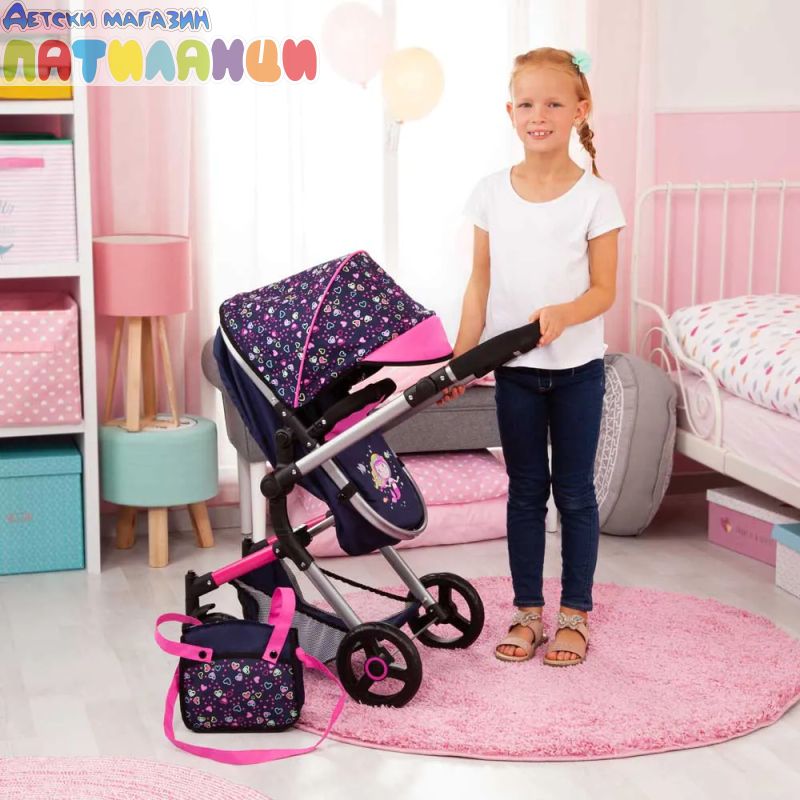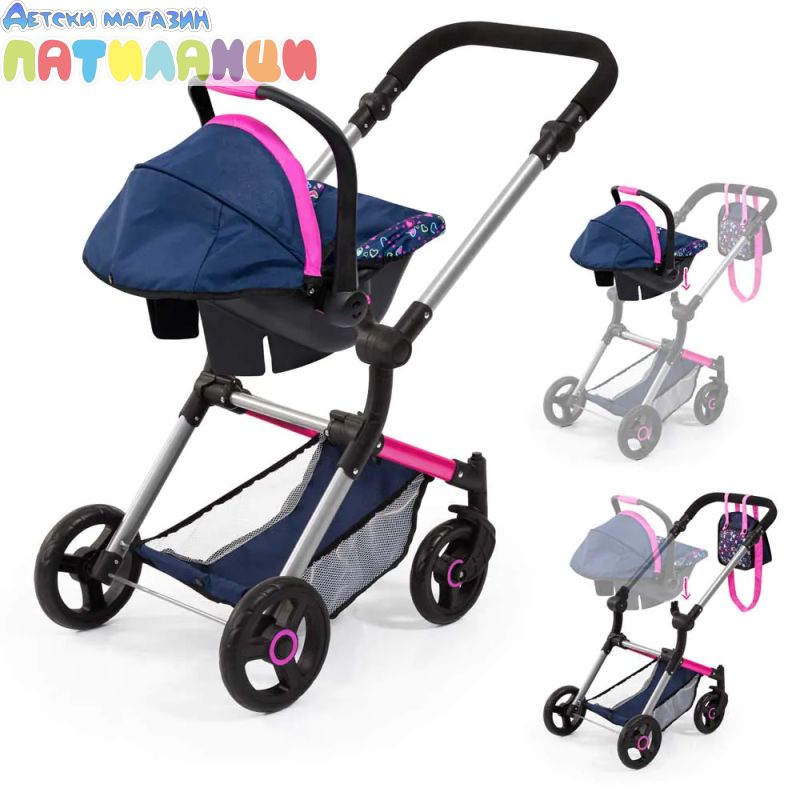 Количка за кукли NEO VARIO трансформираща се с чанта синьо/розова BAYER 18417AA