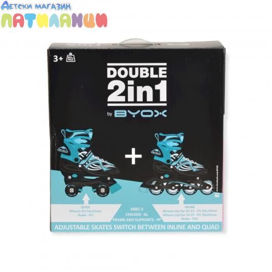 Ролери-кънки Double 2в1 тюркоаз M-(34-37)