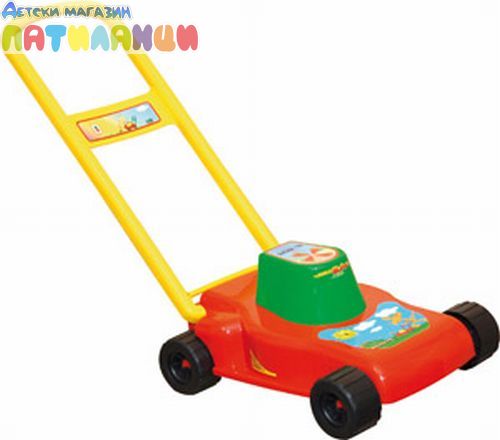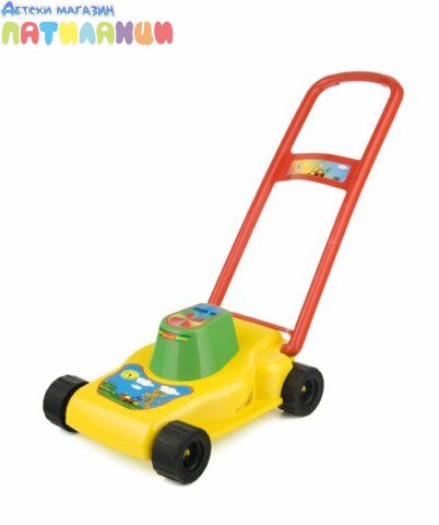 Представлява количка за бутане с удобна пластмасова дръжка.
