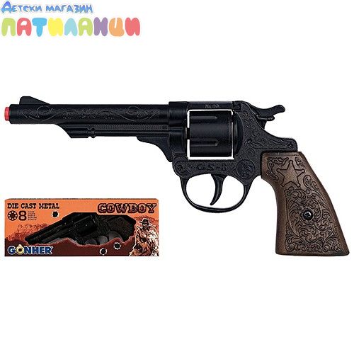Черен револвер пистолет с капси COWBOY GONHER 80