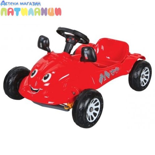 Има широка и удобна седалка със стабилна облегалка за гръбчето. Има тромба на кормилото.