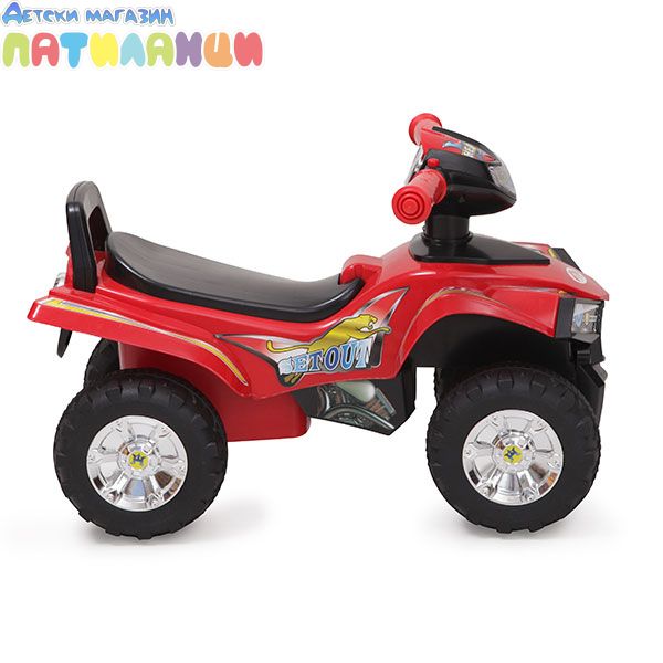 Детското ATV за яздене е с дизайн, който допринася за развитието на моториката и баланса на детето.