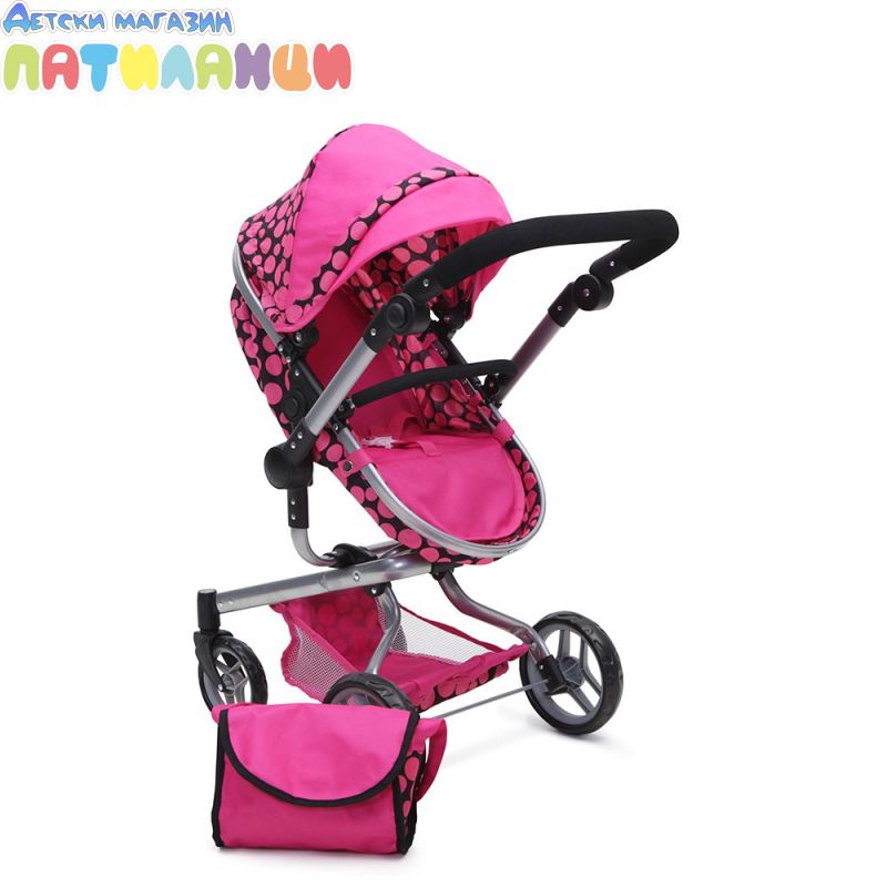 Количка за кукли е чудесен подарък за малките момичета! Количката е много лекa и маневренa. Препоръчва се за деца над 1 година. Благодарение на своя модерен дизайн и ярки цветни тъкани, тя прилича изключително много на истинските колички за деца. Тя е с превъртаща се дръжка и кош за новородени.