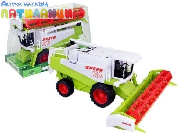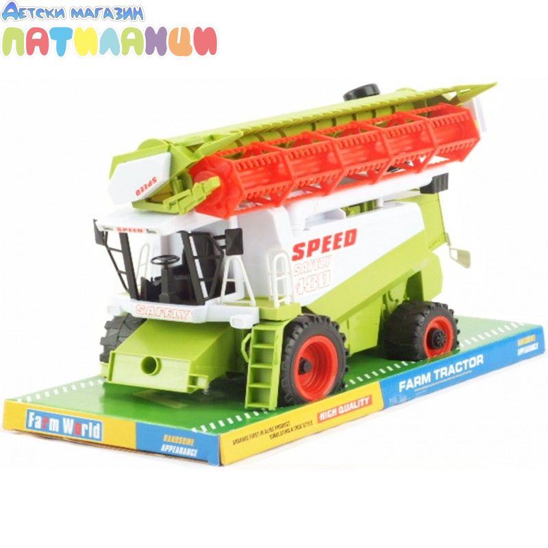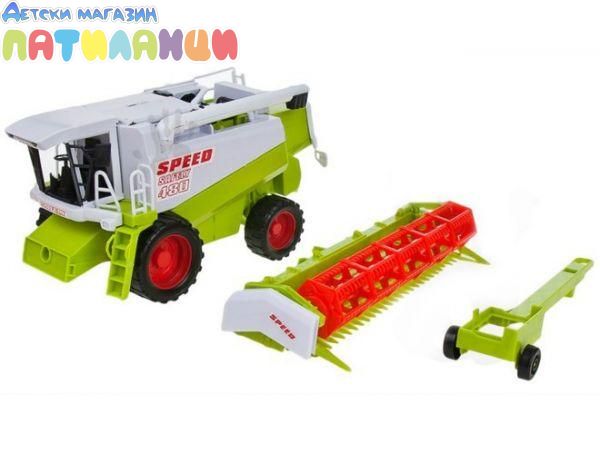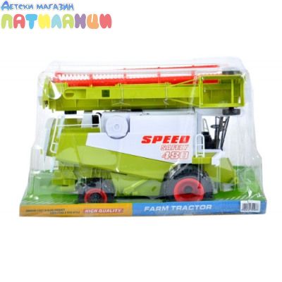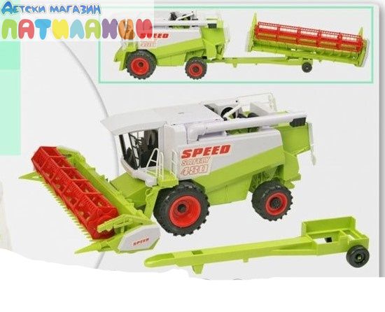 Детската играчка комбайн които ще зарадва Вашето дете. Комбайна има ремарке с косачка за нива. Огромния размер на трактора би впечатлил всяко малко дете.