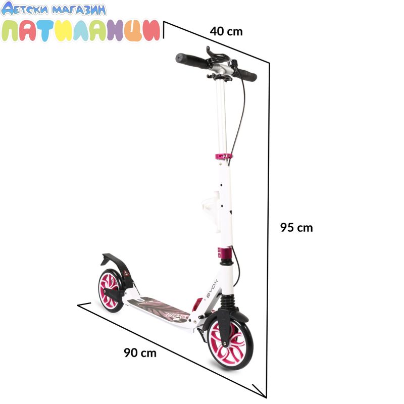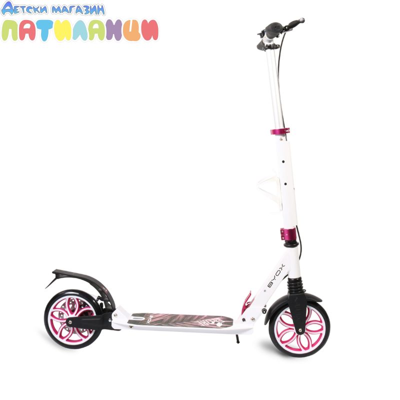 Тротинетката Byox FIORE е идеална за придвижване в града – сгъваема конструкция за лесно съхранение и носене, здрава рамка и дискова спирачка за максимална безопасност.
